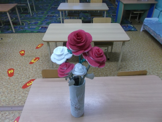 Хочу показать, вам, дорогие коллеги цветы-розы, которые мы смастерили с детками на занятиях по художественному творчеству. А сделаны эти прекрасные цветы из ватных дисков! Толкнуло меня к этой идее занятие по лепке (мы лепили тоже розочку из кружков пластилина, оборачивая их вокруг зубочистки) .Когда вечером умывалась дома, взяв ватный диск в руки, меня осенило-вот он готовый материал для лепестков! Ведь диски все одинаковы и по фактуре, и по размеру! Для работы потребуются:ватные диски, палочка или прямая веточка дерева, двусторонний скотч, ножницы, гофрированная бумага, аэрозольная краска красного цвета (балончик). И руки! Вот что из этого вышло. | |