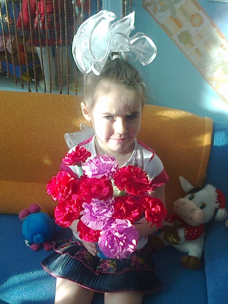 Перед любым наступающим праздником, мы воспитатели вместе с детьми, обычно стараемся поздравить наших дорогих родителей не только заранее подготовленным праздником, развлечением или досугом, но и подарком, сделанным ребенком. И как всегда сам по себе возникает вопрос, что же такое интересное сделать? Чем старше возраст детей, тем больше возможностей в способностях детей. В этом году к празднику Победы мы изготовили гвоздики из оберточной бумаги для цветов. Получив в подарок на любой праздник заветный букет, не торопитесь выбрасывать оберточную бумагу. она в вашей работе может пригодиться. . Итак, начинаем наше изготовление поделки: 1. Из бумаги вырезаем 5 - 7 кружков диаметром восемь сантиметров. Делаем с внешней стороны круга небольшие надрезы. 2. Склеиваем все кружочки небольшим количеством клея, последовательно накладывая друг на друга. 3. Для изготовления стебля цветка берем бумагу зеленого цвета размером 5 на 20 сантиметров и скручиваем в трубочку, конец склеиваем. Вот такая трубочка у нас должна получиться Делаем на ней с одной стороны надрезы Загибаем надрезы в стороны. 4. Приклеиваем стебель к цветку 5. Вот такой цветок у нас получился Чтобы он выглядел более привлекательным, его надо "распушить" 6. Вырезаем из прямоугольников листочки и приклеиваем к стеблю Наша поделка готова! Изготовление такой поделки рассчитано на одно занятие детей старшего дошкольного возраста. Дети с удовольствием выполняли задание, поделка не сложна в выполнении, а результат отличный. Когда мы собрали все поделки в один букет, то получился, как настоящий букет из гвоздик. Как обычно в конце праздника, гвоздики были подарены пришедшим на развлечение родителям. Счастливые родители всегда рады, когда их ребенок дарит подарки, но можно было услышать вопрос, неужели ты сам сделал, а дети гордо отвечали " Конечно, сам мама (папа) " | |